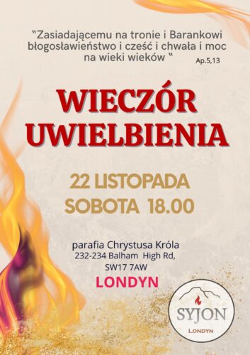 - Wspólnota Syjon zaprasza w przyszłą sobotę, 26 października br., na wieczór uwielbienia, który rozpocznie się bezpośrednio po Mszy świętej o godz. 18.00.